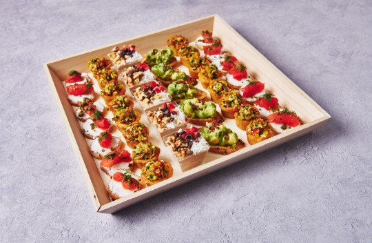 <p>Mini Texas Toast, Avocado Mousse, Pickled Red Onion & Cilantro VEG</p>