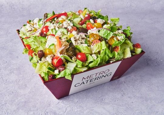 <p>Romaine Lettuce, Cherry Tomatoes, Cucumbers, Onions, Kalamata Olives, Feta Cheese, Bell Peppers, Stuffed Grape Leaves, Feta Cheese Vinaigrette</p>