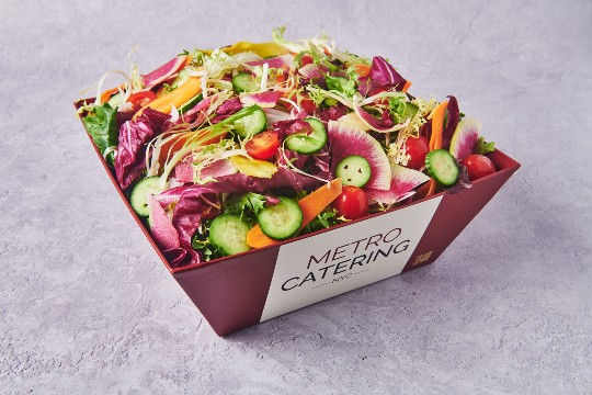 Romaine Lettuce, Cherry Tomatoes, Cucumbers, Onions, Kalamata Olives, Feta Cheese, Bell Peppers, Stuffed Grape Leaves, Feta Cheese Vinaigrette